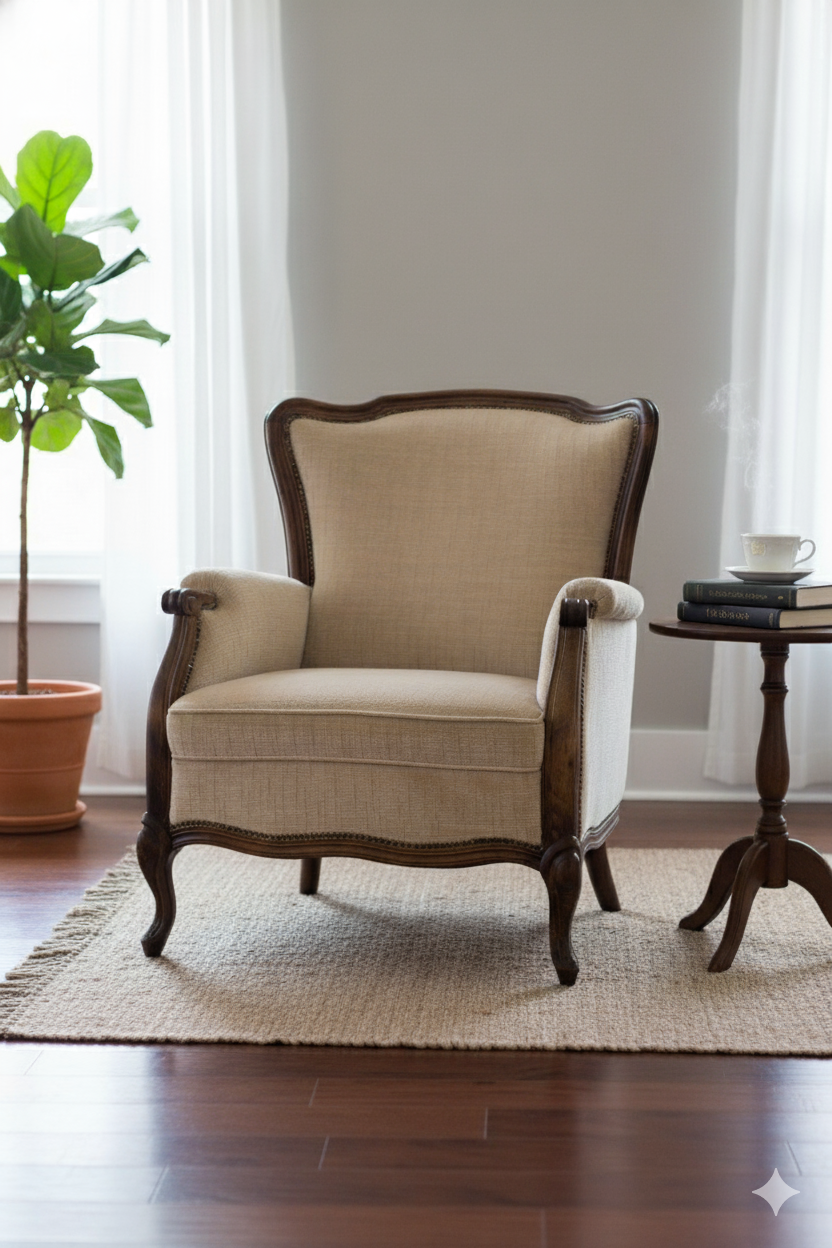 - Classic Silhouette: Features a gracefully curved, fiddle-shaped back and gently rolled arms, embodying the traditional Bergère (fully upholstered armchair) design.