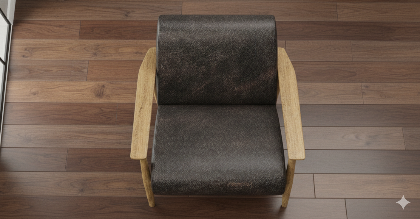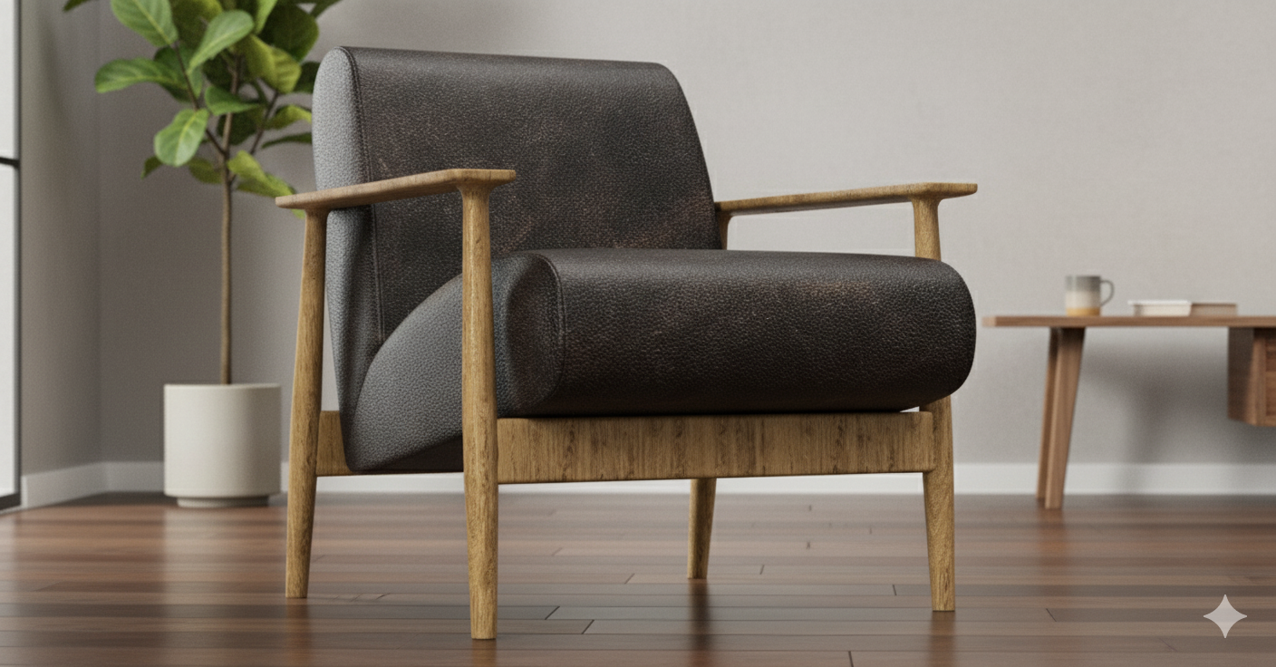 - Camel Leather Upholstery: Features a warm, cognac, or camel brown leather (or high-quality faux leather) with a slightly distressed finish, adding character and a vintage feel to the modern shape.