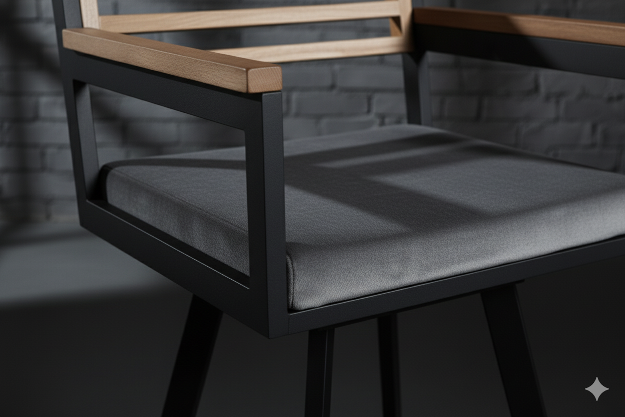- Cushioned Seat: Features a thick, removable gray or dark upholstered cushion for superior comfort.