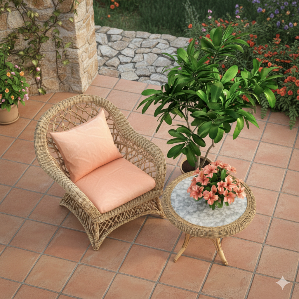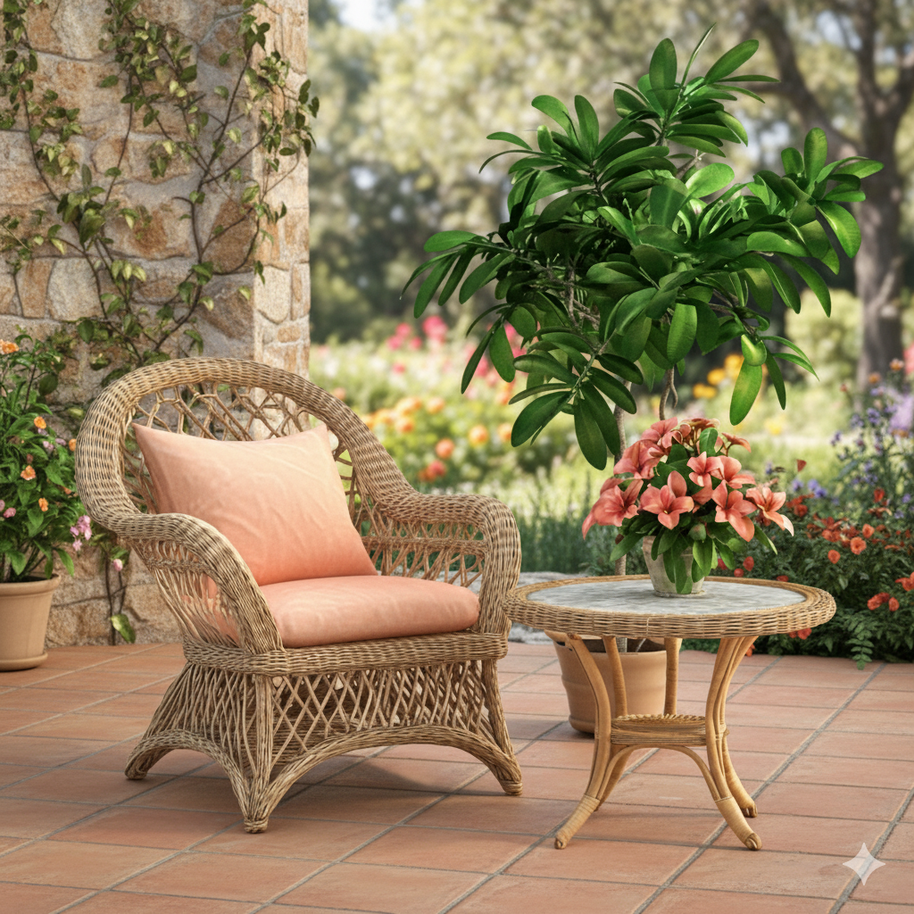Create a relaxing, tropical retreat on your patio, balcony, or sunroom with this classic wicker chair and table set. The set features a deep-seated accent chair and a matching round side table, both meticulously hand-woven from natural rattan or wicker. Its open weave and warm, honey-toned finish bring a timeless, resort-style feel to any outdoor or indoor space.